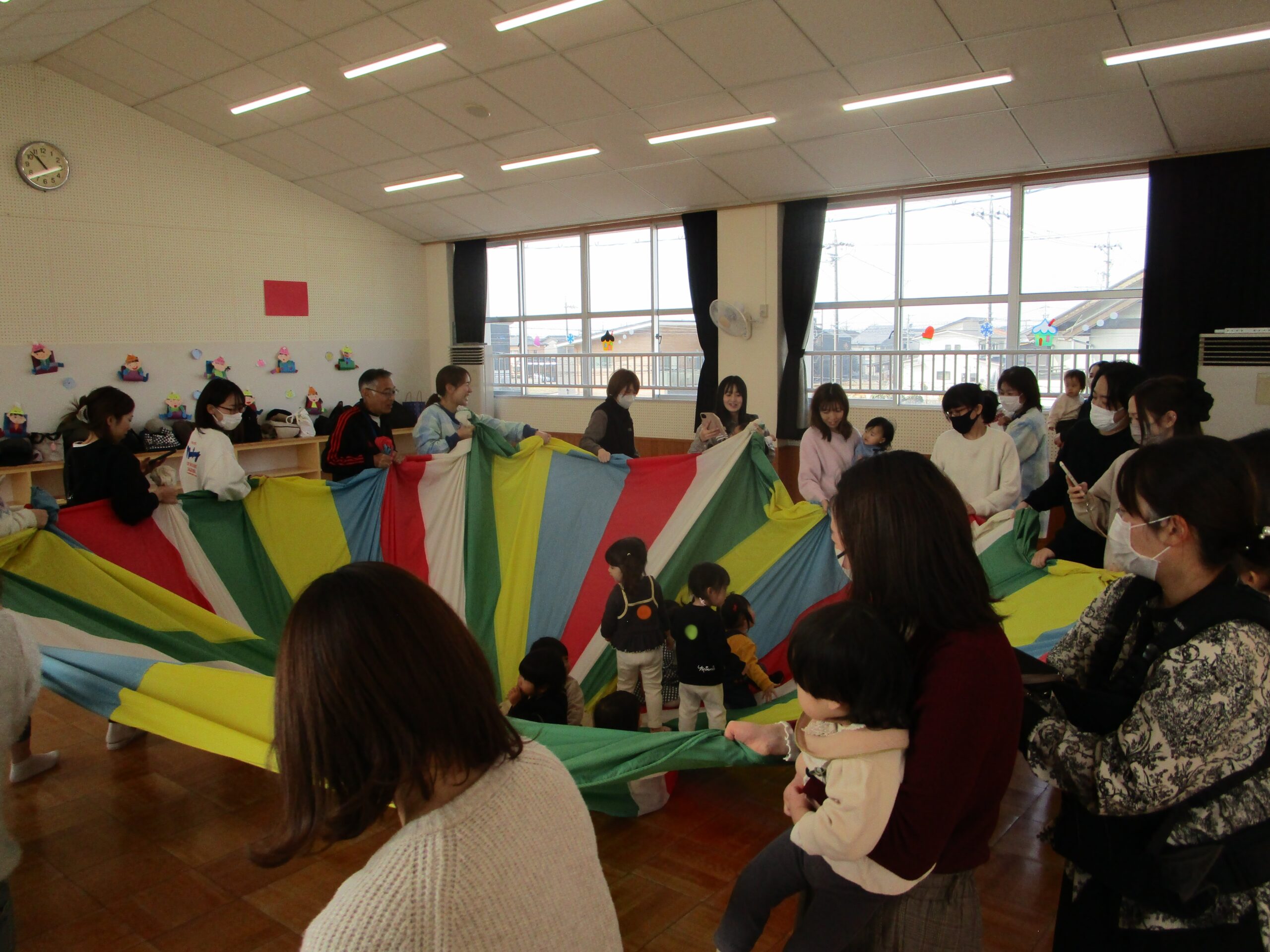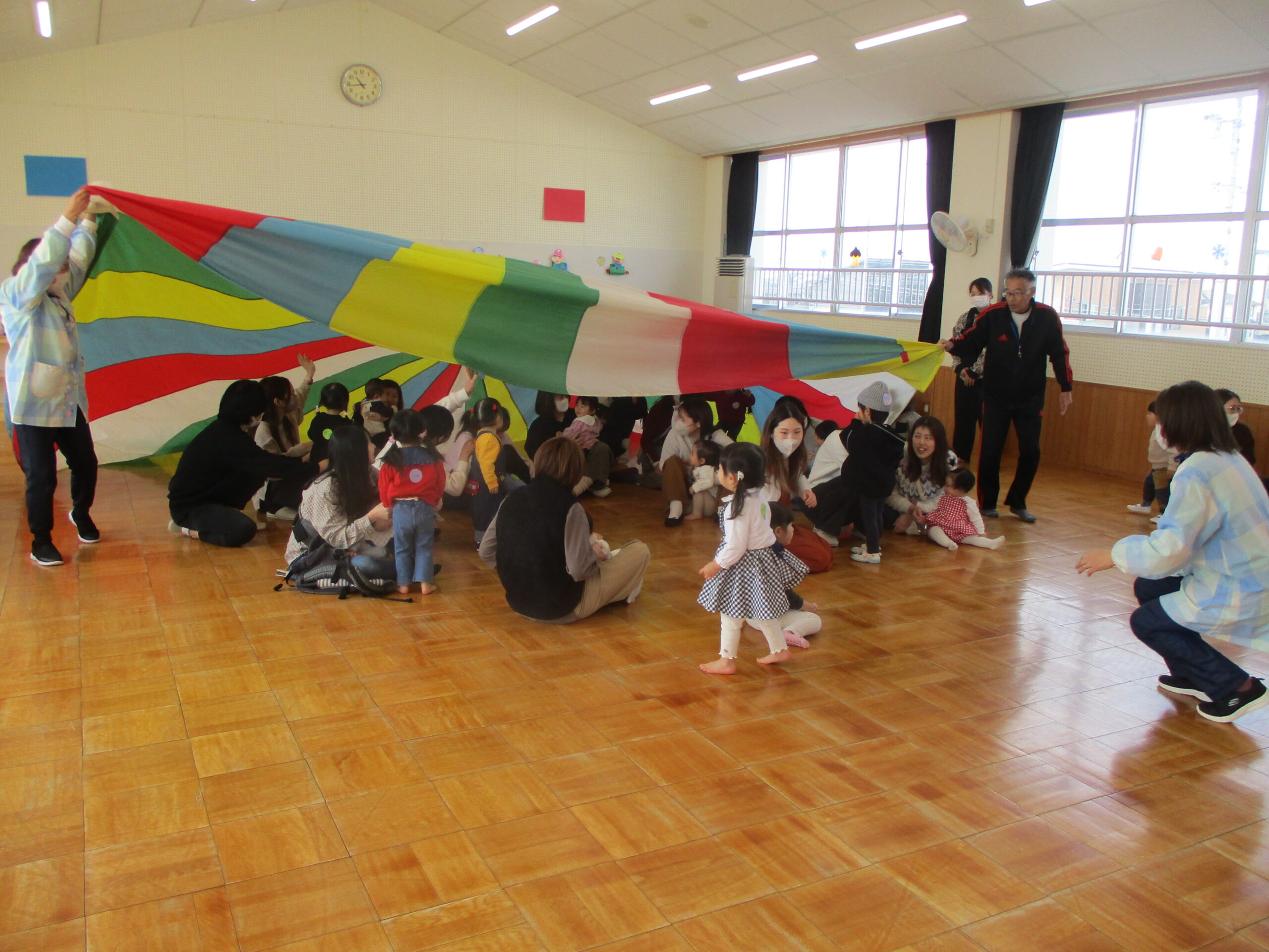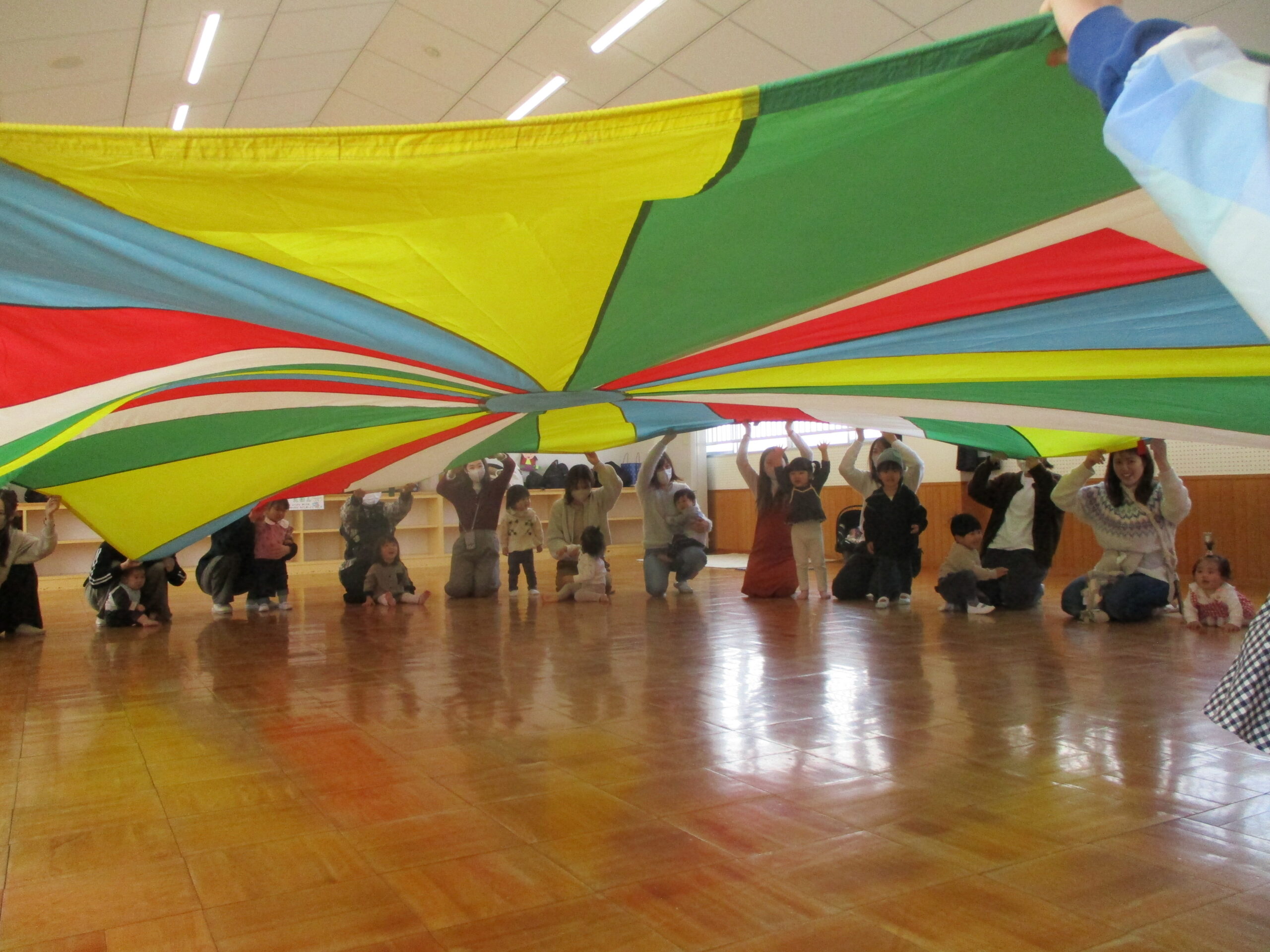 今年度最後のげんきっこクラブは12日、13日両日ともに体育遊びをしました!木曜日はお馴染みのっぽ先生と、金曜日は関谷先生とバルーンを使って遊びました◎初めて見るバルーンに興味津々なお友達もいれば圧倒されて涙が出てしまったお友達も。。。後半はお楽しみ会!仲間集めゲームをしてグループを作り、ママさん&お子様の交流の場を設けました。なかなか自分から初めましての方に話しかけるのは緊張しますよね…そこで!ママさんたちからのお題(聞いてみたい事、子どもの事など)を募ってそれについて交流していただきました♪とても和やかな雰囲気で話している皆さんが楽しそうで何よりでした♡